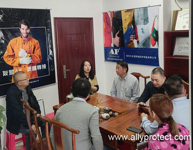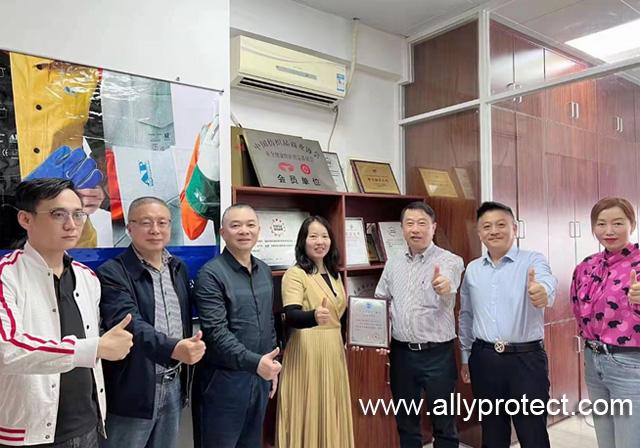 2022年3月4日,廣東省安全生產(chǎn)協(xié)會勞動防護分會會長李聲譽、秘書長祝平、副秘書長杜玉霜一行到達副會長單位——梧州市友盟焊接防護用品有限公司,受到了友盟總監(jiān)鄒暖春及公司各區(qū)域負責人的熱情接待。