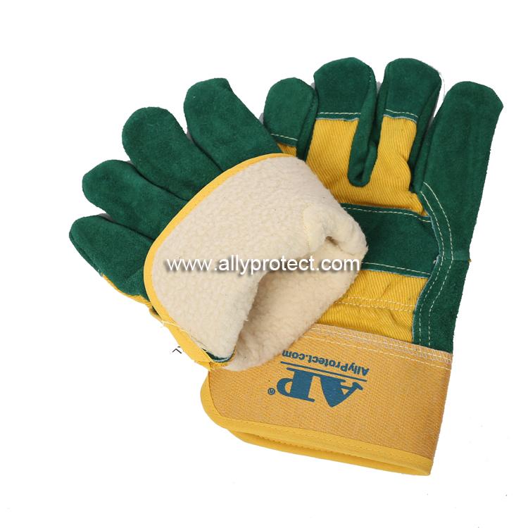 該款手套手掌部分采用耐磨、抗穿刺的牛二層皮制成質(zhì)地厚實且柔軟,抗穿刺及耐磨程度均勻;