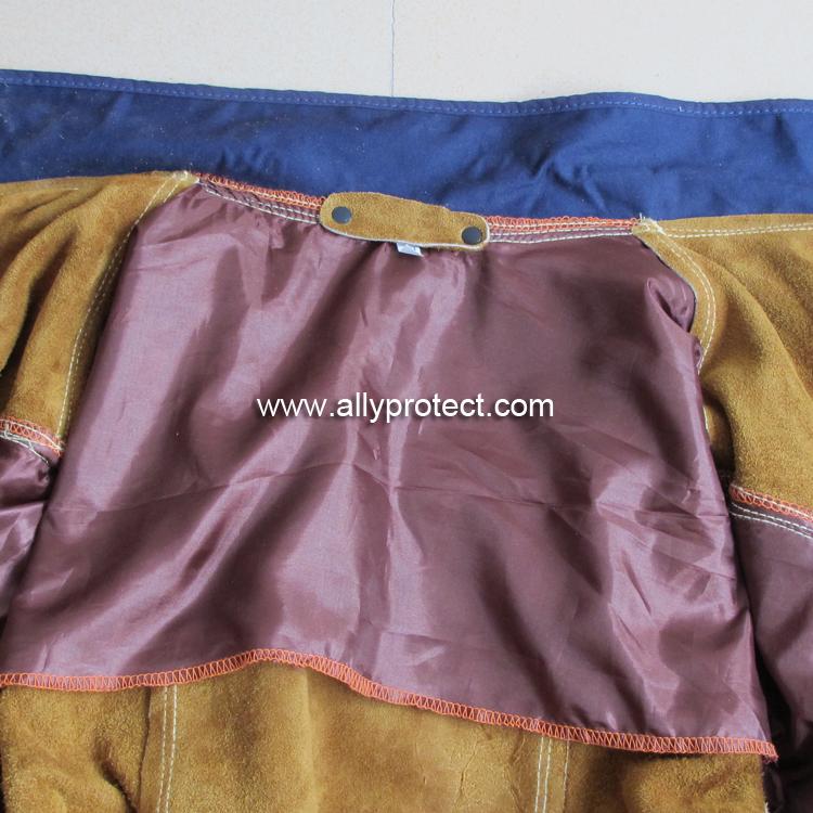 - 產(chǎn)品描述: 精選耐磨、柔韌的牛二層皮,由杜邦Kevlar?防火線雙線縫制而成。緞面料肩部內(nèi)里,便于穿戴。 立領(lǐng)安全設(shè)計。適用于高強度焊接,抵擋電焊火花飛濺,降低電焊輻射對皮膚的傷害,保護作業(yè)安全。